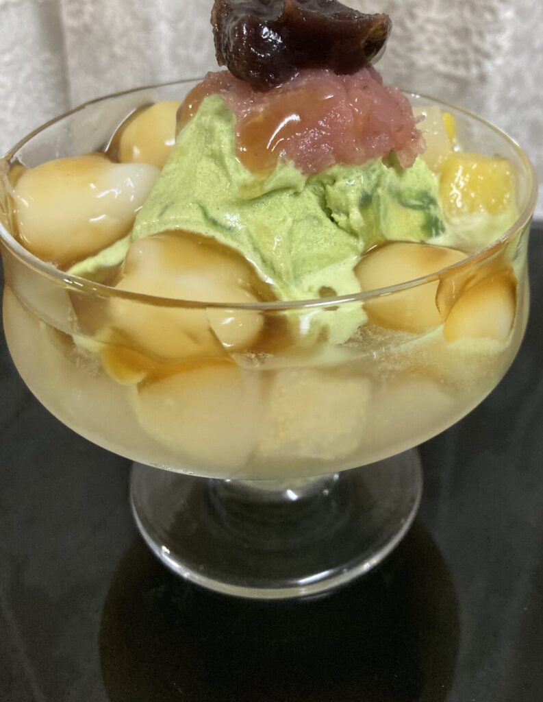 材料は抹茶粉小さじ1、バニラアイス185gから195g位