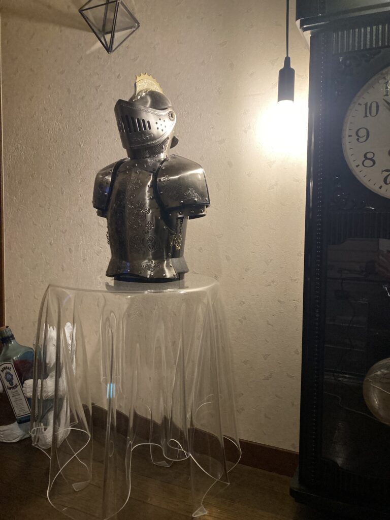 変わったレトロな品を集めています。ニッカウィスキーの騎士のデカンタと大きい古い柱時計