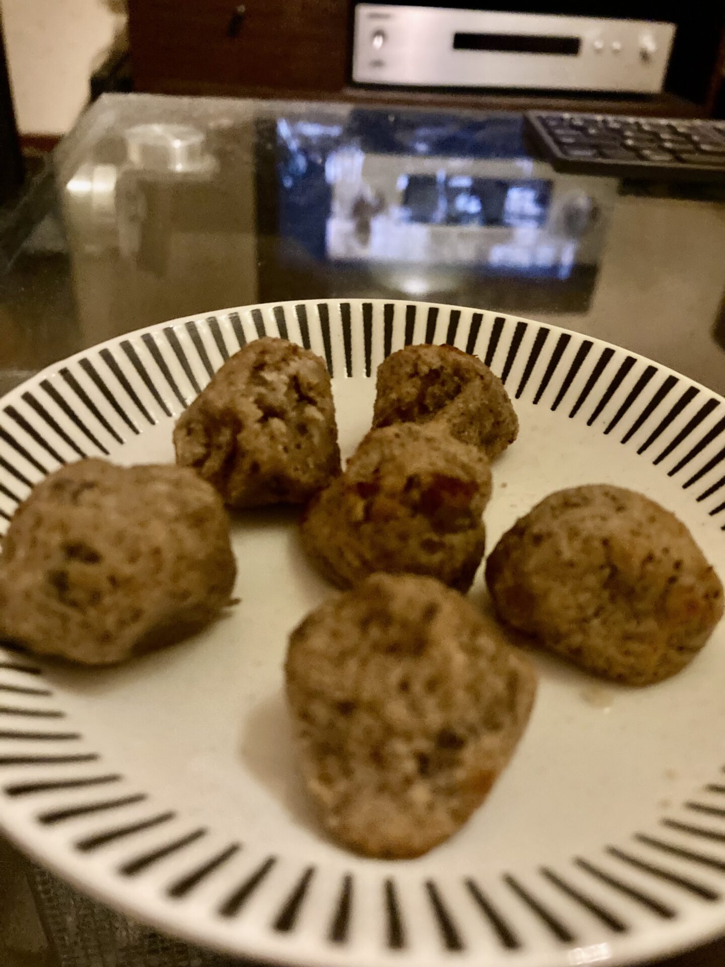 モンブランクリーム完成してしばらく冷めるまで置いといて手で崩れないように好きな形にしてトーストかノンフライヤーで焼きます。上はかなり小さめにしてノンフライヤーで200度で10分程焼きました。焼く時間を多くするほどカリッとした感じになります。これくらいだと外が少し硬くなって中は少ししっとりした感じです。